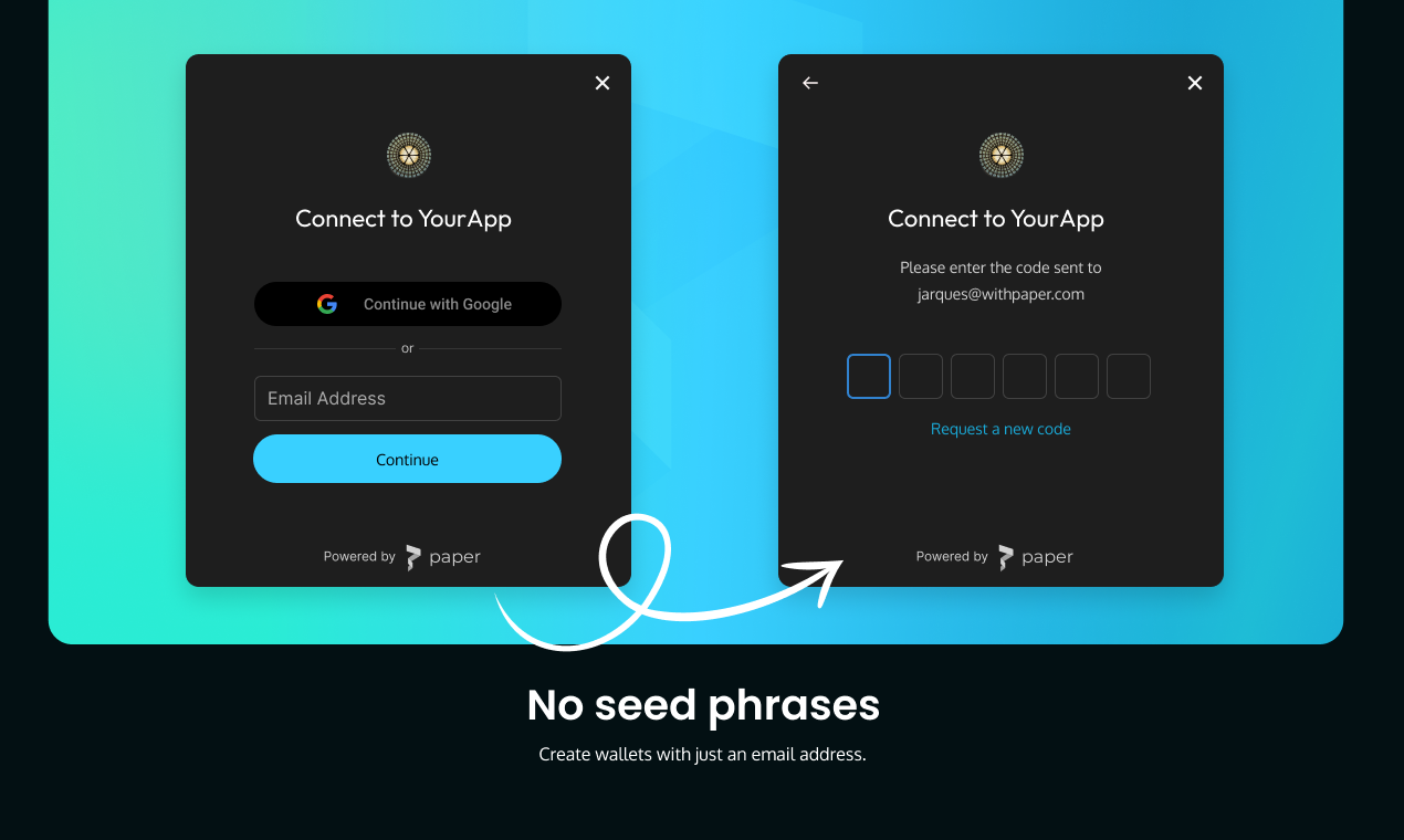 No seed phrases. Users can create secure wallets with email or social sign-on.