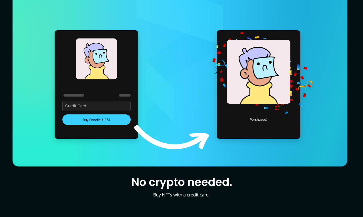 No crypto needed. Users can buy NFTs with credit card, Apple Pay, or Google Pay.