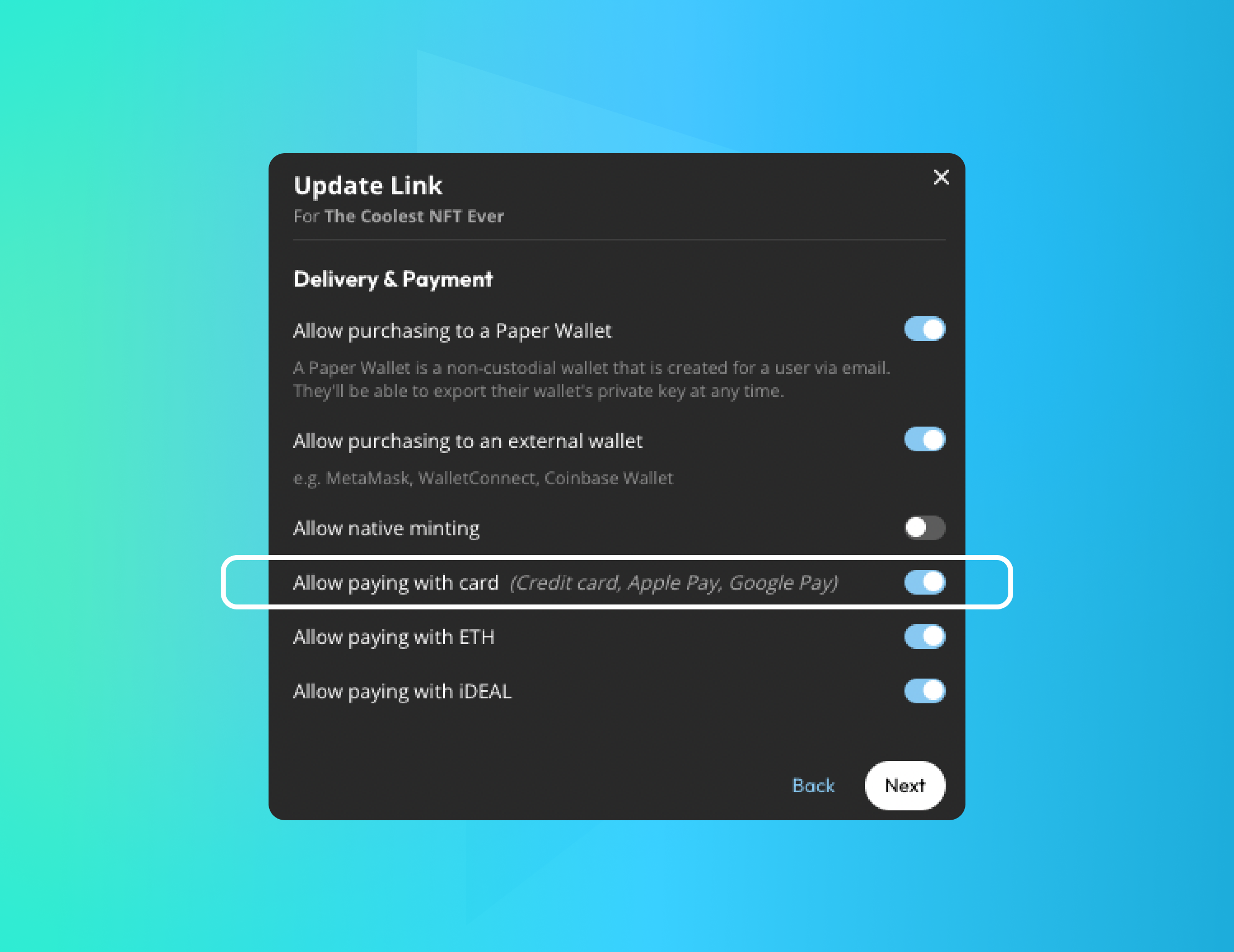 Learn how to choose the best payment options to offer your buyers from credit card, Google Pay, Apple Pay, iDEAL, cross-chain, and native mint