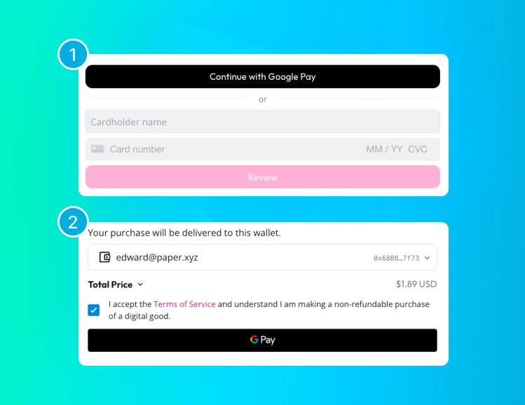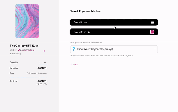 Everyone talks about onboarding the next billion users into web3, however, this isn't something that can be done solely through educational content or guides. At Paper, we believe that widespread adoption of NFTs and web3 will come from the intersection of web2 and web3. What we mean by this is leveraging web3 technology while offering familiar experiences like that of web2. We believe this is what eases the barrier to entry so anyone can participate and be curious about web3. In the payments realm, this looks like offering familiar payment methods such as credit cards to create an e-commerce-like experience while still leveraging blockchain technology to facilitate the transaction.