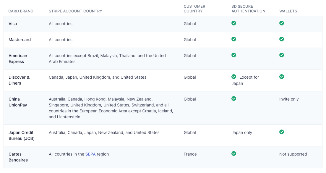 Credit cards are our bread-and-butter payment option. Paper allows your customers to purchase NFTs using their credit card. With our payments processing powered by Stripe and Checkout.com, we support the following cards: